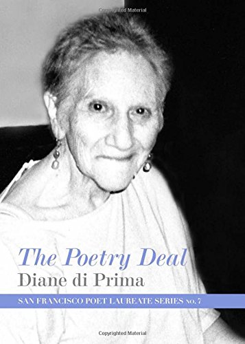 The Poetry Deal is the first new full-length collection in decades from the feminist Beat poet Diane di Prima. Written before and during her tenure as San Francisco’s poet laureate, di Prima’s latest confronts the world around her—and the city she adores—with a steady gaze, at once stern and loving. These poems encourage us to “[u]nplug one day a / week: stay home, tell stories, make love,” and caution against our increasing reliance on social media: “she doesn’t say ‘stay in touch’ and mean Facebook or LinkedIn / stay in touch means you touch each other, lovers or not / you crash on his floor, or bring her your old sofa…” In many ways, this book, framed by two prose pieces, is a love song to San Francisco—and a plea for the city to live up to its past and potential. “...I let this stardust, these cataracts, the dust or bus-exhaust or whatever it is...convince me that I live in the place I dreamed of when I came here,” di Prima writes. “City Lights 1961” commemorates her first visit to the bookstore, while other poems mourn writers, artists, and other beloved friends (there’s even one about visiting Ezra Pound at “St. Liz.”). Above all else, di Prima is a generous poet: “I’d like my daily bread / however you arrange it,” she asks of the muse in the title poem, “and I’d also like / to be bread, or sustenance, for some others / even after / I’ve left.