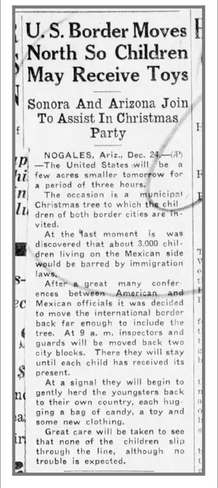 Small Group Discussion: Share what you noticed about the poem with a small group. How would you describe the events in “Christmas on the Border, 1929”? Based on the details you just shared with your group, how does this poem compare to the resources from the beginning of class? What do you make of the lines, “For a few transcendent hours, / the border moved” and “[...] for one day, there was no border”?