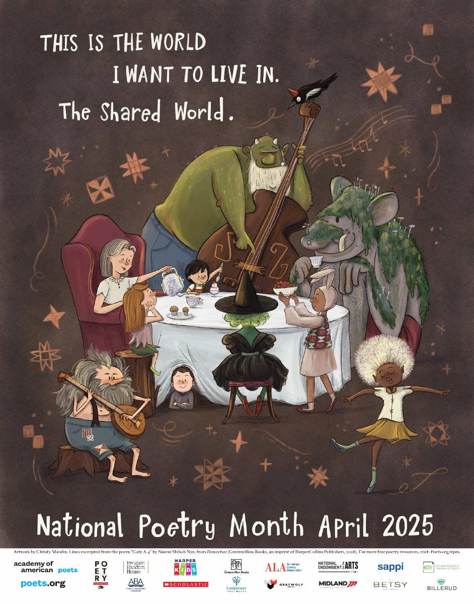 Educators, librarians, and poetry lovers of all ages can celebrate National Poetry Month by ordering a free copy of this year’s poster, designed by New York Times-bestselling author and illustrator Christy Mandin and featuring powerful lines by former Academy Chancellor Naomi Shihab Nye. Order your free copy to display before the request line closes on April 14, and bring National Poetry Month to life. Get your free copy.
