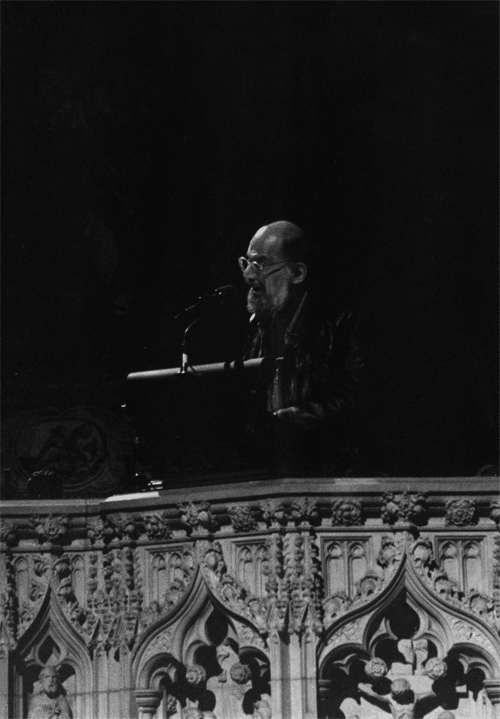 Photo © Dorothy Alexander Allen Ginsberg reading from the pulpit at St. John the Divine during a tribute to Walt Whitman. see more photographs and ephemera from the archive