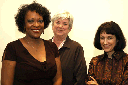 Chancellors Rita Dove and Ellen Bryant Voigt standing alongside former Executive Director Tree Swenson.see more photographs and ephemera from the archive
