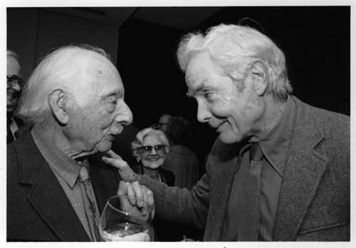 (Left to right) Stanley Kunitz and W. S. Merwin greet each other at the Academy's sixtieth anniversary ceremony in 1994.see more photographs and ephemera from the archive