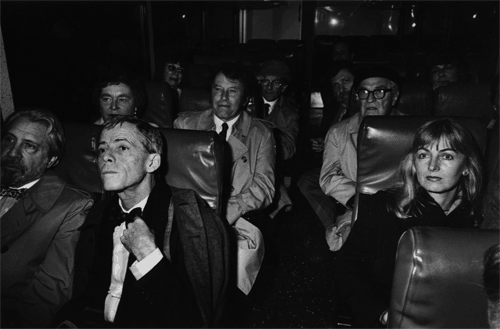 Anthony Hecht (far left), James Merrill, Richard Wilbur and others travel to the 50th anniversary celebration of the Academy of American Poets at the Library of Congress.