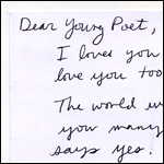 At the 2012 AWP Conference, poets who stopped by the Academy of American Poets's table were asked to deliver a piece of advice for younger poets. Below is a sample of these helpful gems of wisdom: