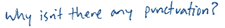 It should be clear at this point that inquiry into earlier questions about form and technique have yielded larger questions of interpretation. So let’s return for a moment to a question of form. All that’s left from the list of first impressions is the lack of punctuation. How would the lack of stops anywhere in the poem reinforce the idea that ordinary things are of great importance? What does grammar accomplish in any text? For one thing, it helps determine beginnings and endings, and for another, it works with conjunctions to represent relationships among things, time, and ideas in the text. But in this poem, there is none of that. Why? Without the interruptions of commas and periods, the words flow together. They are not discrete parts but one whole unit, differentiated only by the space between couplet or stanza. But the pairing of lines seems to create a unity as well: four equal parts. So the "scene" is integrated further by the lack of any hierarchy imposed by punctuation. The grammar remains, of course.