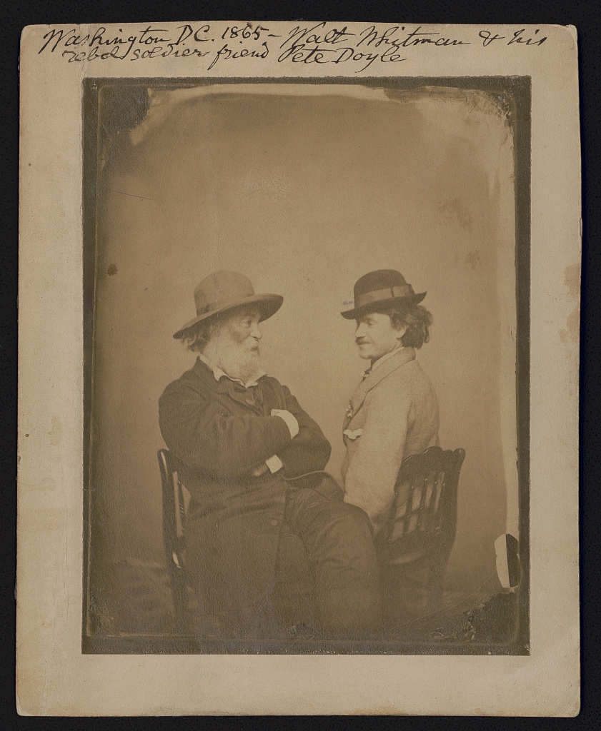 This photograph of Walt Whitman and his soldier friend Peter Doyle was taken in 1856 in Washington, D.C.